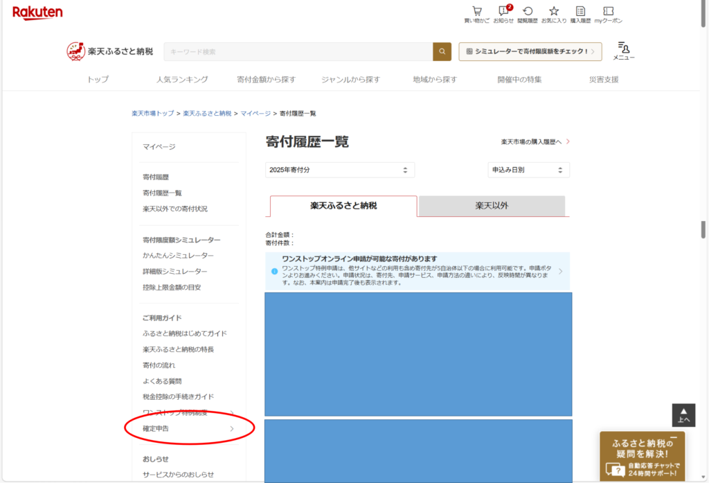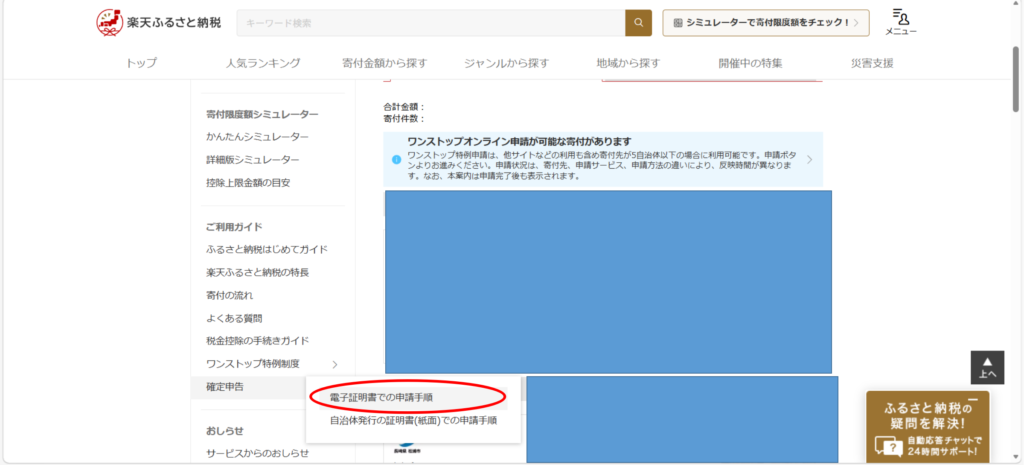 ・楽天ふるさと納税 寄付金控除証明書の発行