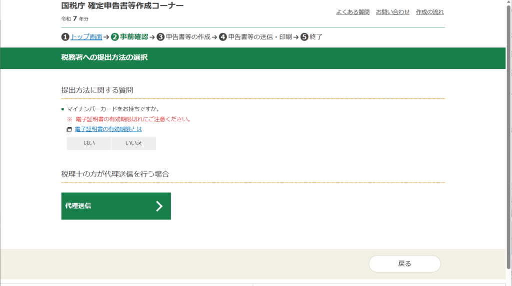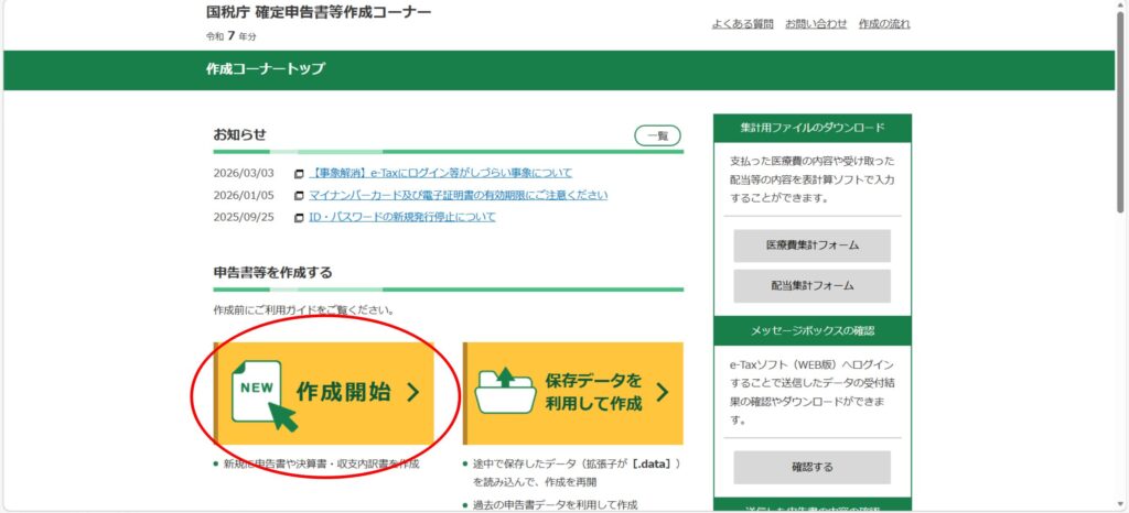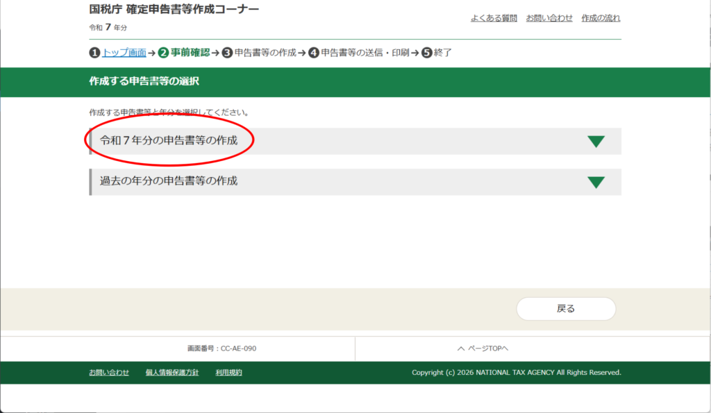 令和7年分の申告書等の作成をクリックすると下に開きます。