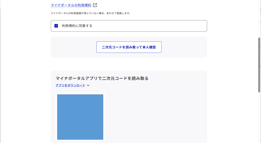 次は2次元コードをスマホのマイナポータルアプリで読み取って、ログインしていきます。