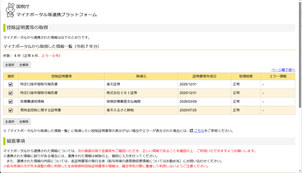 僕の場合ですが、4つ連携出来て、自動取得できました。
