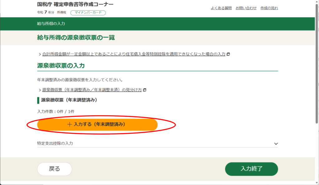 源泉徴収票の入力が終わると、ちょっと頑張った気になりますよね。