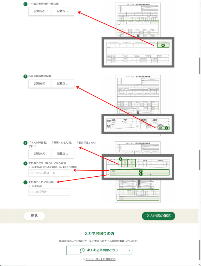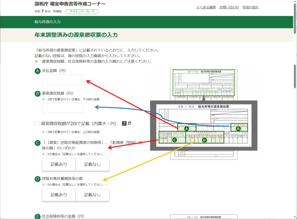 A 支払い金額・・・源泉徴収票の支払い金額に書かれている金額を入力します。