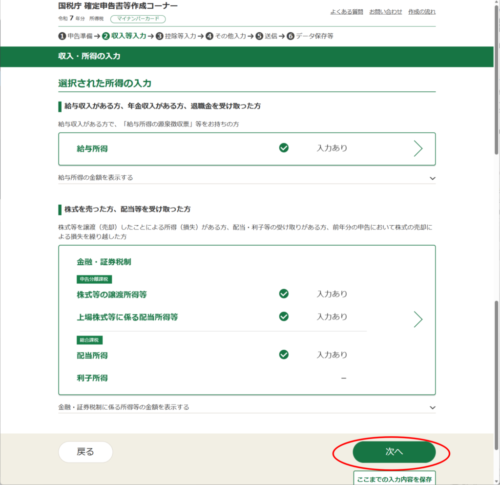 前回は「総合課税」とか「申告分離課税」まで進みました。いよいよ控除の入力に入ってきます。