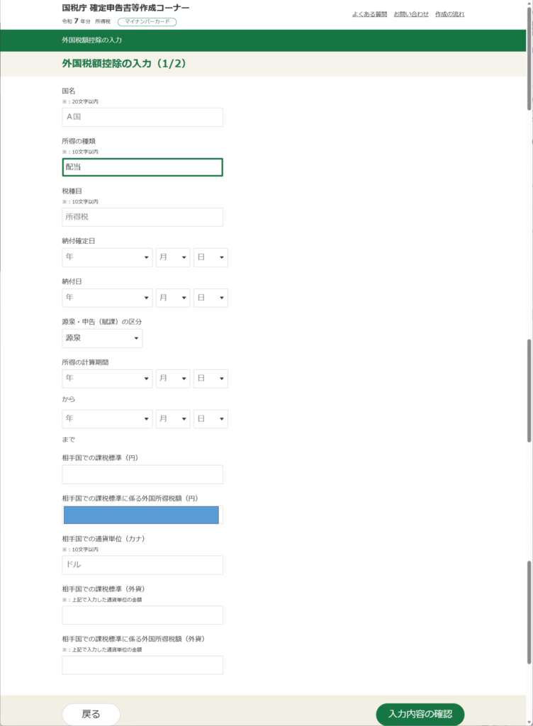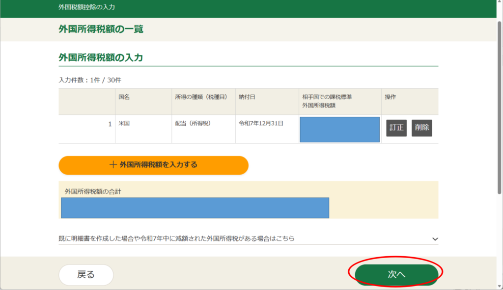 ・外国税額控除の入力(1/2)