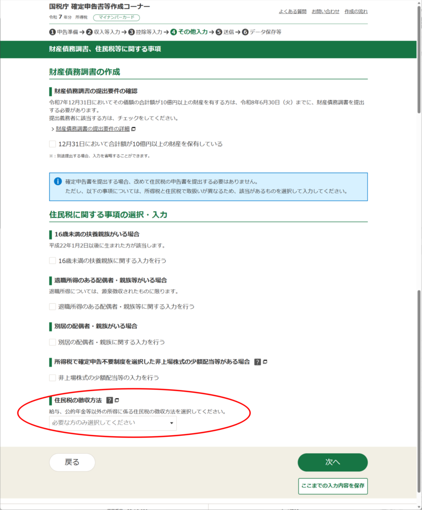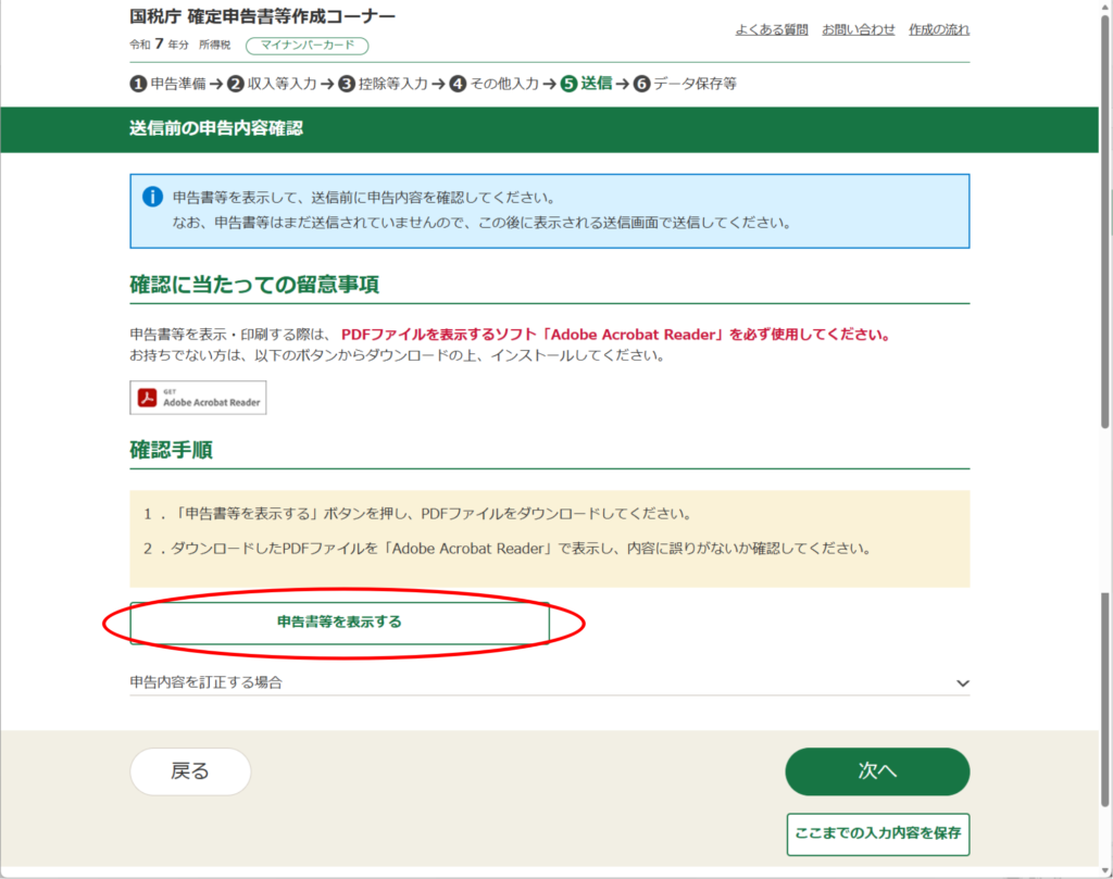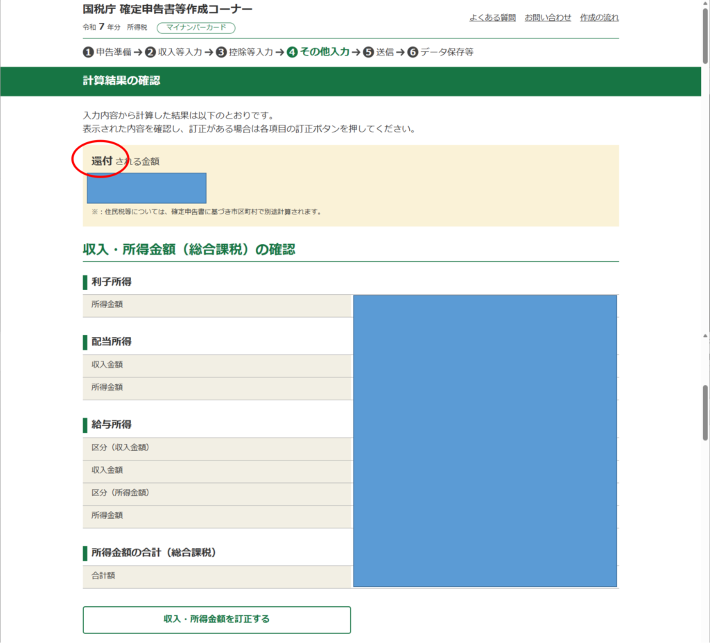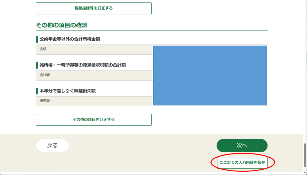 そして、「戻る」を3回押して、「収入・所得の入力」画面まで戻ります。