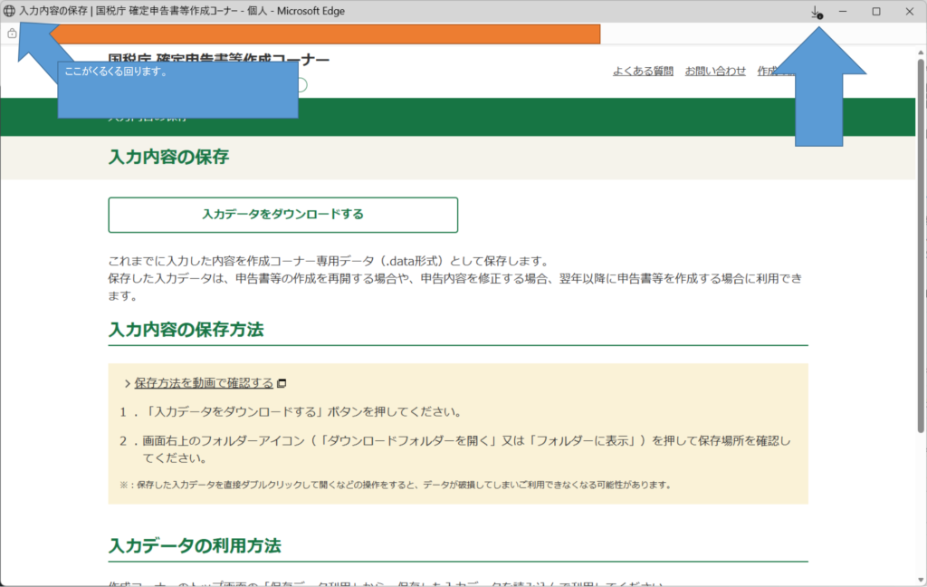 「申告書等を表示する」をクリック。右上端のダウンロードマークがひっそり出るので、そちらをクリック。