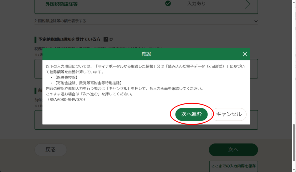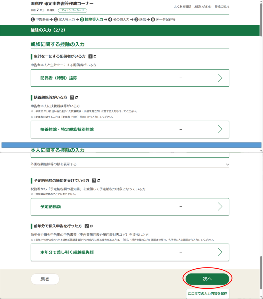同じように進めている方は、「控除の入力」画面からだと思います。