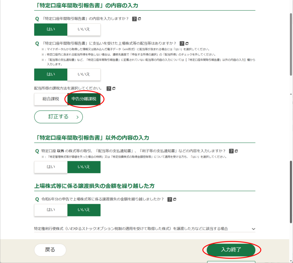 僕はしょうがないので、また3回「戻る」をクリックして、「総合課税」に変更しました。