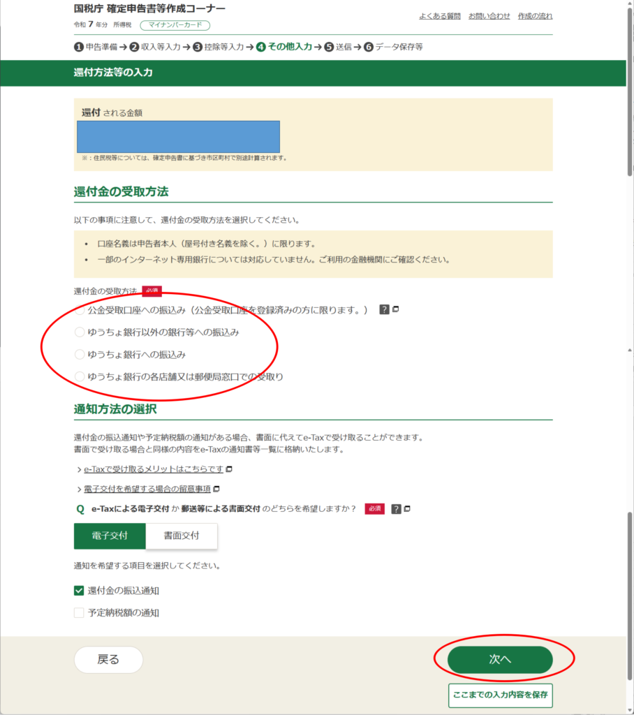 ・還付方法等の入力